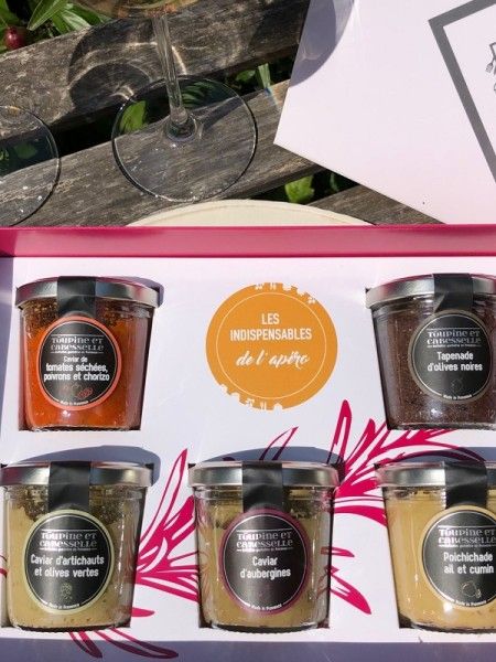 Dans leur gamme, nous avons sélectionné le coffret apéritif Saveurs pimentées. Cadeau idéal pour un apéritif réussi, ce coffret se compose de 5 tartinables: